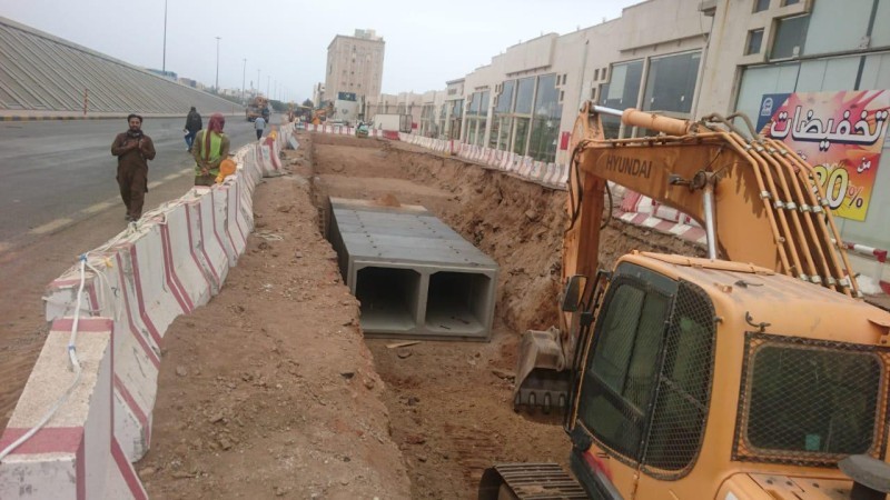 وأوضحت أمانة المدينة المنورة انه بعد توقف دام خمسة عشرة عام في احد مشاريع درء أخطار السيول وتصريف مياه الأمطار، بسبب وجود عده عوائق حالت دون استكمال ربط عبارة تصريف مياه الأمطار الممتدة من منطقة العهن جنوب المدينة المنورة وحتى منطقة العريض شرق المدينة بسبب مجموعة من العوائق نتج عنها توقف المشروع، منها خط مياه قطر 1000 مم وخط مياه قطر 200 مم وخط صرف صحي قطر 200 مم، بالإضافة إلى وجود مجموعة من كيابل الاتصالات، وكيابل تابعة للكهرباء. حيث أنهت أمانة المدينة المنورة تنفيذ المشروع وربط عبارة تصريف مياه الأمطار التي يبلغ طولها 8,300كلم، واستدعت عوائق تنفيذ العبارة العمل على فترتين صباحية ومسائية وذلك لسرعة إنجاز المشروع ولوجود كثافة مرورية عالية بالموقع.