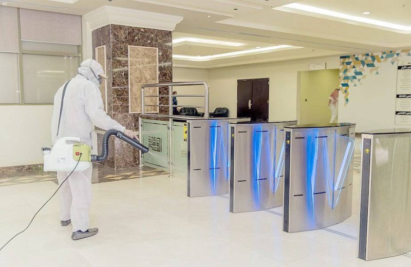 مواصلة تطهير المباني ومناطق خدمة المراجعين.