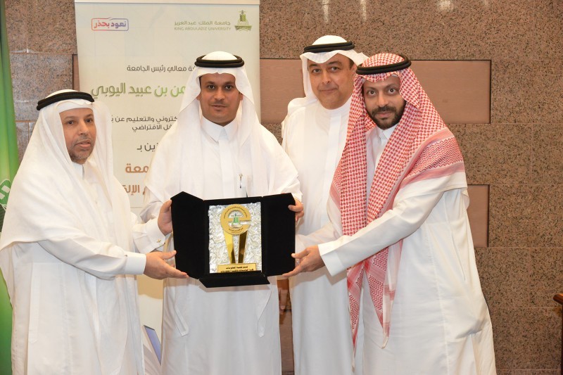 كرَّم رئيس جامعة الملك عبدالعزيز الدكتور عبدالرحمن بن عبيد اليوبي، اليوم (الثلاثاء)، الفائزين بجائزة رئيس الجامعة للتميز والإبداع في التعليم الإلكتروني في دورتها الخامسة 1440 /1441هـ في قاعة مجلس الجامعة، بحضور وكلاء الجامعة والعمداء وعدد من أعضاء هيئة التدريس والطلبة.