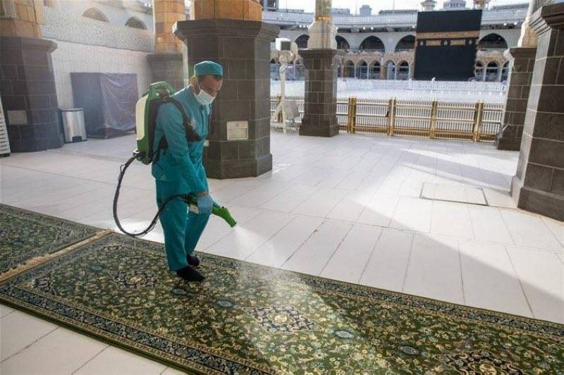 جانب من عمليات تعقيم المسجد الحرام.