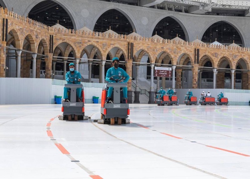 كثفت الرئاسة العامة لشؤون المسجد الحرام والمسجد النبوي ممثلةً بالإدارة العامة للشؤون الفنية والخدمية وإدارة تطهير وسجاد المسجد الحرام، الجهود والإجراءات الاحترازية، والتدابير الوقائية والصحية، وزادت عمليات التطهير والتعقيم، وذلك بعد أن أدى حجاج بيت الله الحرام طواف الإفاضة، حرصاً على صحة وسلامة ضيوف الرحمن والعاملين في البيت العتيق.
