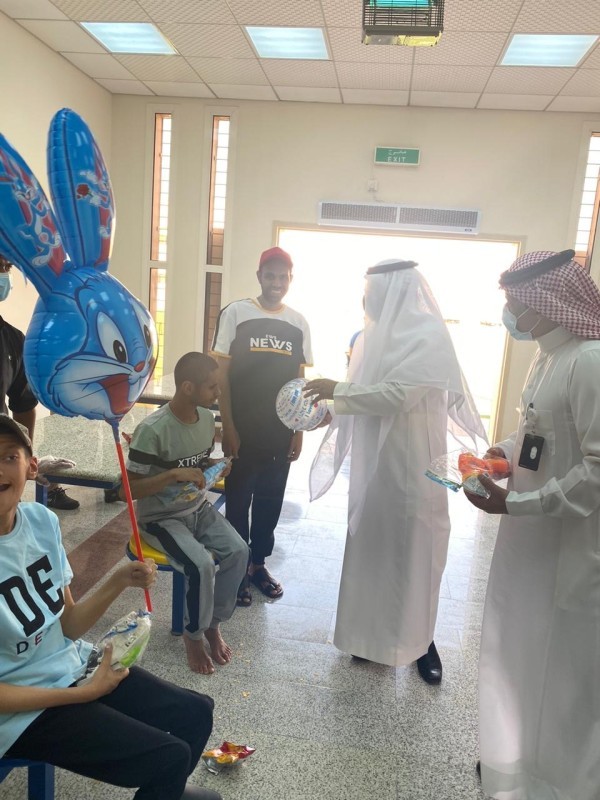 وهدفت الزيارة إلى مشاركة نزلاء المركز فرحة عيد الأضحى المبارك وإدخال السعادة والسرور إلى قلوبهم، والاطلاع على حاجاتهم والخدمات المقدمة لهم، كما شملت الاحتفالية الاطلاع على خدمات المركز وما يقدمه خلال العيد للنزلاء.