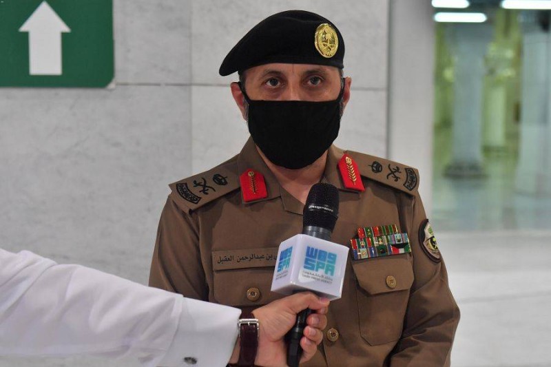 وقال اللواء العقيل: «نعمل على تنفيذ الخطط المعتمدة لإنجاح حج هذا العام وفق التدابير الوقائية والإجراءات الاحترازية منذ قدوم حجاج بيت الله الحرام إلى مكة المكرمة وصولاً إلى أداء طواف الوداع، حيث رُتب دخولهم من أبواب معينة، وفق مسارات محددة من وقت الدخول حتى النزول إلى صحن المطاف، وتوزيعهم على المسارات التي روعي فيها التباعد المكاني، والبدء بالطواف بشكل جماعي».