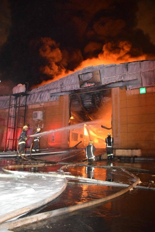وأوضح المتحدث باسم الدفاع المدني بمنطقة الرياض تلقي مركز التحكم والتوجيه بالإدارة العامة للدفاع المدني فجر اليوم بلاغا حول حريق في حي المصانع، لتنتقل فرق الدفاع المدني للموقع حيث اتضح أن الحريق في مستودعين متجاورين، ونظراً لنوع نشاط أحد المستودعين في صناعات البلاستيك، ومستودع (إطارات) نتج عنه تصاعد لهب وأدخنة بكمية عالية، وبذل رجال الدفاع المدني جهودا مضاعفة في عملية احتواء الحريق ومنع امتداده إلى المستودعات المجاورة لها وإخماده دون حدوث إصابات أو وفيات، ولا زالت إجراءات التحقيق حول أسباب الحادث قائمة.