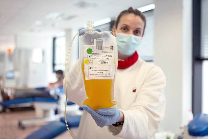 بلازما النقاهة بعد أخذها من متعافٍ تبرع بها.