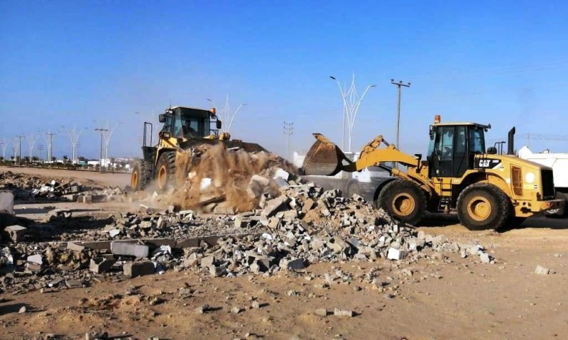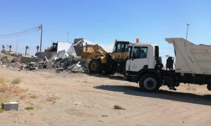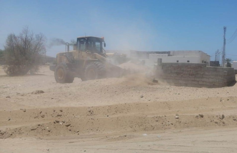وأوضحت البلدية أنها قامت اليوم بإزالة الأحواش والغرف والهناجر والسواتر الترابية التي تقع في مدخل المحافظة الشمالي على الطريق الدولي أملج - الوجه.