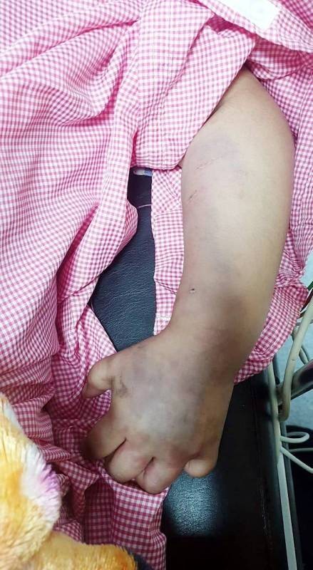 وقالت والدتها لـ«عكاظ» إن التقرير الطبي الصادر من مستشفى الملك فهد أشار إلى إصابتها بكسرين في اليد وكسر في الترقوة اليسرى ورضوض في كامل الجسم وقطع في الأذن اليمنى وجرح ونزيف في الرأس وانتفاخ في اللسان.