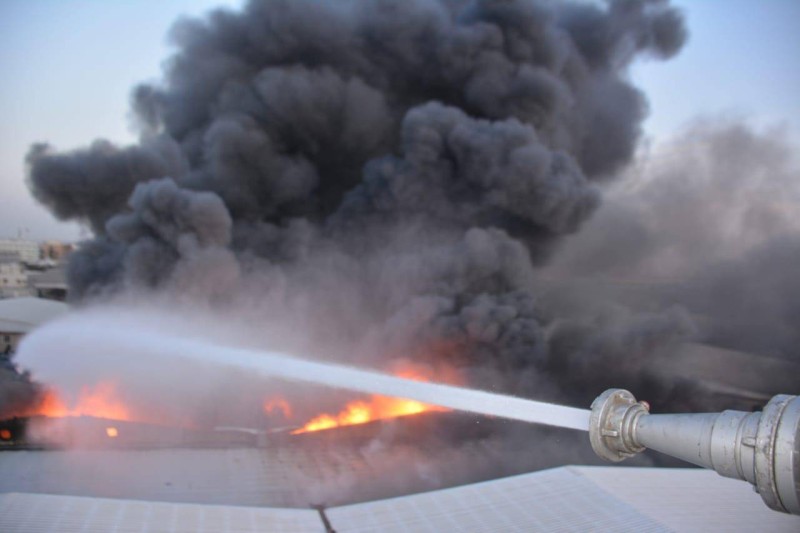 تكافح آليات الدفاع المدني بمحافظة جدة نيران حريق شب في عدد من المستودعات بجي المحجر.