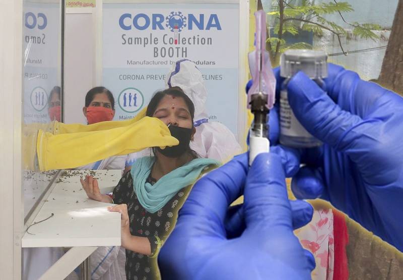 الفحص بمسحة الأنف في حيدرأباد بالهند.