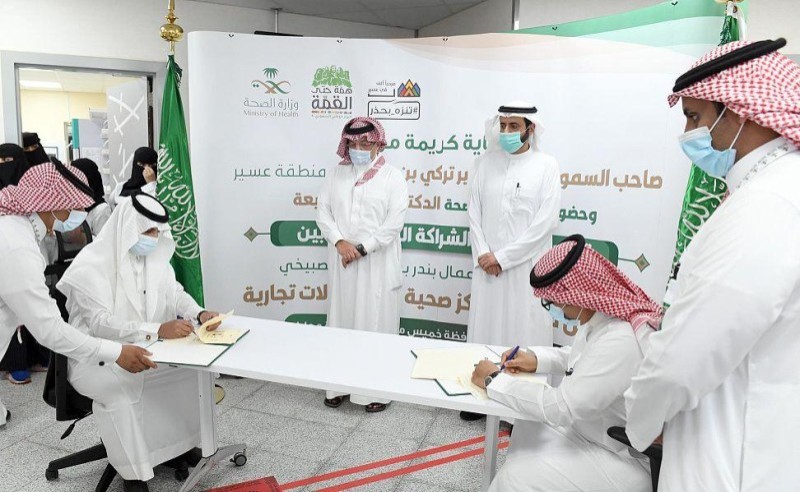 وشهد أمير منطقة عسير ووزير الصحة، توقيع اتفاقية للشراكة المجتمعية بين صحة عسير ورجل الأعمال بندر بن إبراهيم الصبيخي، بهدف تخصيص مراكز صحية داخل المجمعات التجارية في مدينة أبها ومحافظتي خميس مشيط ومحايل عسير، وتكريم الدكتور مهند حلواني نظير ابتكاره «مقبض طبي يستخدم في جراحة الأسنان»، خلال فترة عمله بصحة عسير، بعد ذلك زار أمير منطقة عسير وبحضور وزير الصحة، مركز الأمير فيصل بن خالد لأمراض وجراحة القلب بأبها، وثمّن أمير عسير، الجهود التي تقدمها الوزارة لخدمة أهالي منطقة عسير وزوارها، في ظل ما توليه القيادة الرشيدة من دعم واهتمام للقطاع الصحي، ورفع مستوى الخدمات المقدمة للمواطن والمقيم.