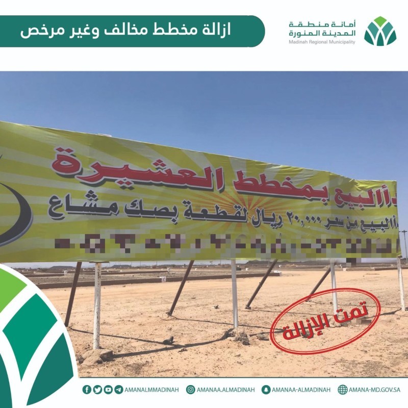 وطالبت أمانة المدينة المنورة المواطنين بعدم الانسياق خلف الإعلانات المضللة التي يتم من خلالها تسويق وبيع الأراضي دون وجود صكوك شرعية؛ لأنها تدخل في إطار التعدي على الأراضي الحكومية.
