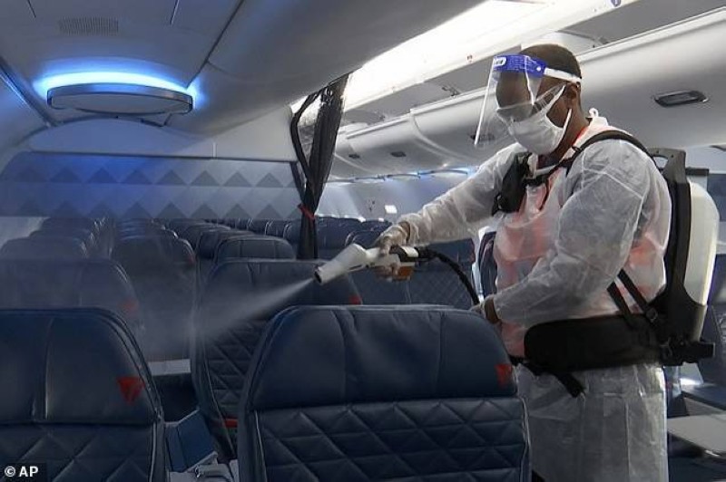 شركة دلتا تستخدم جهازاً كهروستاتيكياً لتنظيف طائراتها.