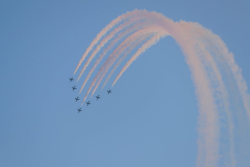 ووسط حضور مميز من الزوار والمتنزهين، بدأت فعاليات الاستعراض في الساعة الرابعة عصرا ولاقت تشكيلاتها الجمالية صدى واسعاً في قلوب المشاهدين الحاضرين في كورنيش الخبر، معبرين عن سعادتهم بعد أن حول الصقور سماء الخبر إلى استعراضات مثيرة من خلال الحركات البهلوانية والتشكيلات الجديدة ملونين سماء الخبر باللون الأخضر، والعلم السعودي.