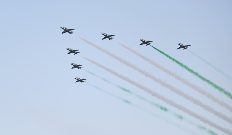 قدم فريق الصقور السعودية عروضاً مشوقة عصر اليوم (الخميس) بلوحات جمالية استعراضية تفاعل معها الجمهور، وذلك على كورنيش محافظة الخبر، يأتي ذلك ضمن احتفالات اليوم الوطني الـ90.