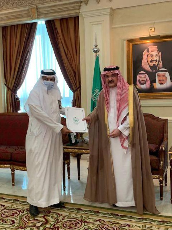 من جهة أخرى، كرّم محافظ جدة الأمير مشعل بن ماجد بن عبدالعزيز محافظ جدة اليوم (الإثنين) أعضاء لجنة حملة "براً بمكة " بمحافظة جدة. وشكر الأمير مشعل أعضاء اللجنة على الجهود التي قاموا بها خلال جائحة كورونا.