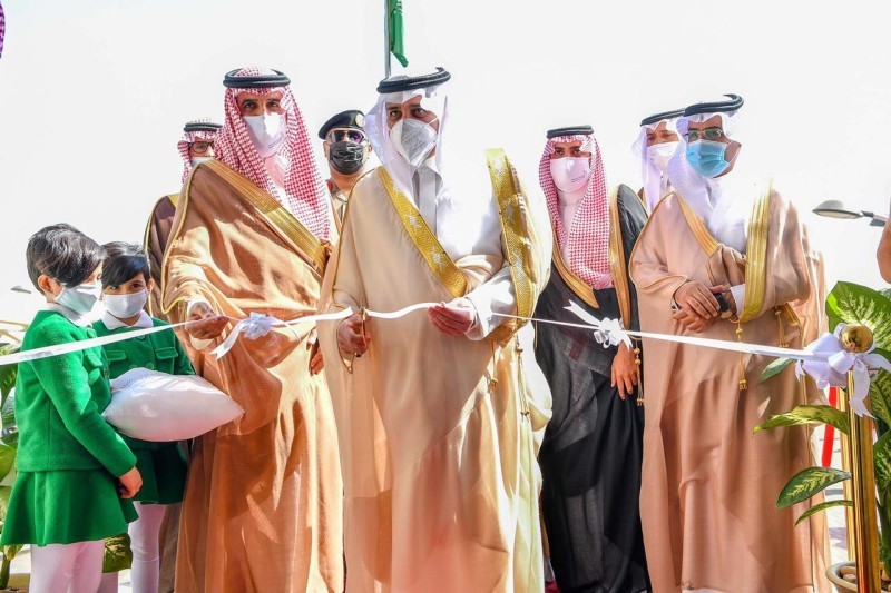 أمير تبوك خلال قص شريط افتتاح المبنى.