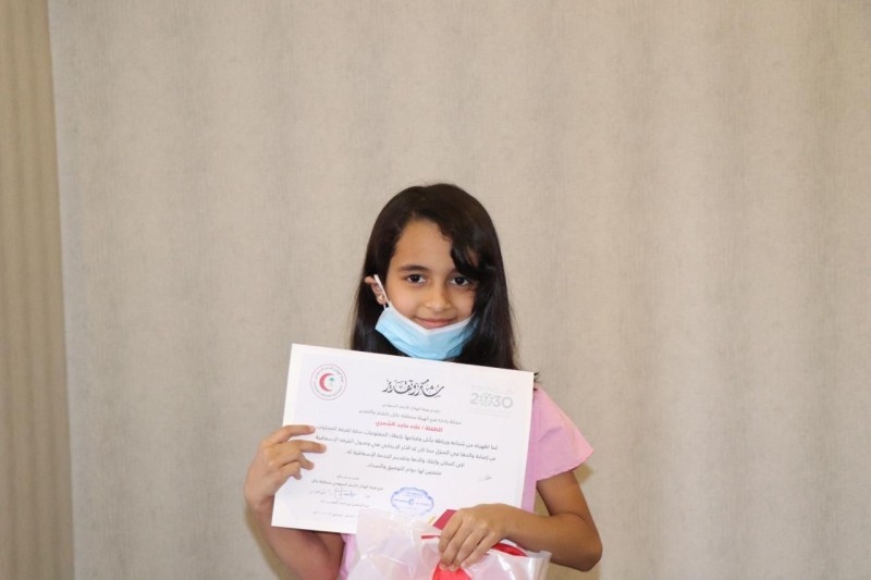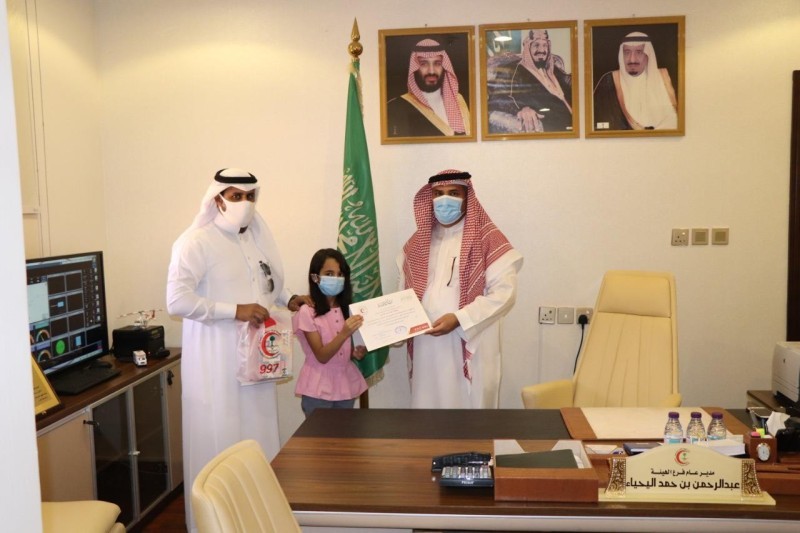من جهة أخرى، نقل مدير عام فرع هيئة الهلال الأحمر السعودي بمنطقة حائل عبدالرحمن اليحياء تحيات وشكر رئيس هيئة الهلال الأحمر السعودي الدكتور محمد جلال العويسي، وقام بتكريم الطفلة غلاء الشمري.