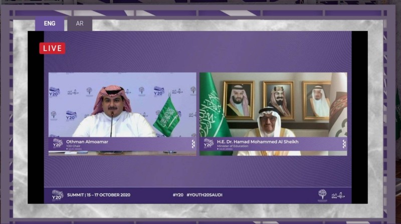 نيابة عن خادم الحرمين الشريفين الملك سلمان بن عبدالعزيز آل سعود، تسلَّم وزير التعليم الدكتور حمد بن محمد آل الشيخ البيان الختامي لمجموعة تواصل الشباب 20 (Y20)، التي انعقدت افتراضيَّاً من 30 -28 صفر 1442هـ الموافق 17 - 15 أكتوبر 2020، مختتمةً بذلك أنشطة المجموعة لهذا العام.