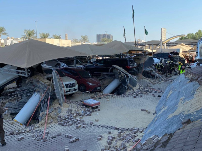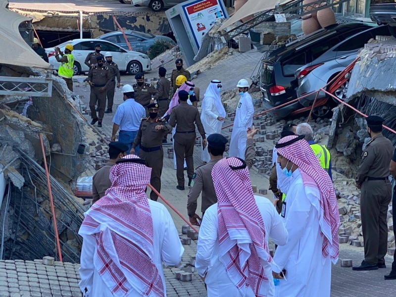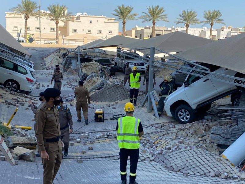 رصدت «عكاظ» أمس (الأحد) تفاصيل وتداعيات حادثة الهبوط الأرضي المفاجئ في موقف سيارات بأحد الأبراج التجارية في مدينة الخبر. وكانت صافرات الإنذار انطلقت بعيد الهبوط الذي حدث في حي الراكة الجنوبية وتسبب في تلفيات بعشرات المركبات واحتجاز عدد من العمال تحت أنقاض الموقف المنهار، وجرت عمليات الإسعاف وتحرير المحتجزين حتى لحظة إعداد الخبر. وطبقاً لمصادر تحدثت لـ«عكاظ» فإن فرق الدفاع المدني أجلت رجلين ونقلتهما سيارة إسعاف إلى مستشفى قريب من الموقع، وتولى مسعفو الهلال الأحمر تقديم الإسعافات الأولية للمصابين منذ ورود بلاغ الهبوط الأرضي عند الساعة الـ11:30 صباحاً، وتواجد في الموقع أمين المنطقة الشرقية المهندس فهد الجبير، ومدير الدفاع المدني بالمنطقة الشرقية، ورئيس بلدية الخبر المهندس سلطان الزايدي.