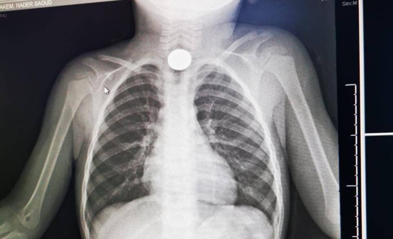 وأوضحت صحة القريات أن الجسم عبارة عن «عملة معدنية» أعلى المريء، حيث تم استخراجه والطفلة حالياً بحالة صحية جيدة.