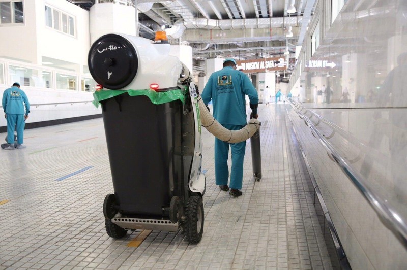 وأوضح مدير الإدارة العامة للشؤون الفنية والخدمية نايف بن ذياب الجحدلي، أن العمال وعشرات الآليات وأجهزة التعقيم التي يستخدمها العمال خلال وردياتهم تغطي اليوم على مدار 24 ساعة، وعمليات التطهير يستخدم فيها 60 ألف لتر من المطهرات يومياً، صديقة للبيئة، ويتم استخدام أكثر 1200 لتر معطرات، و470 معدّة، فيما يستخدم 900 لتر معقم أيادٍ يومياً بمعدل 300 لتر لكل وردية، تعبأ في 300 جهاز معقم آلي للأيادي، وتستخدم نحو 3500 لتر من المعقمات يومياً للأسطح والسجاد. وأشار الجحدلي إلى وجود فريق من المتخصصين في المجال لمتابعة الأعمال اليومية، وجميعهم لخدمة المسجد الحرام وتطبيق التباعد الاجتماعي داخل الحرم.