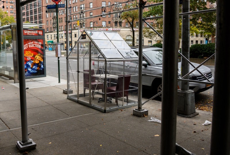 وأخرى تشبه عربات القطارات. ويأملون أن يعينهم ذلك على الاستمرار في عملهم خلال الشتاء. لكن علماء متخصصين في مكافحة الأوبئة والأمراض المُعدية يرون أن كثيراً من تلك الكبائن ليست آمنة. ويقولون إنها على رغم محدودية مساحتها، التي تفرض تقليص عدد ضيوفها، إلا أن على من يرتادونها تطبيق البروتوكولات الصحية نفسها. وبسبب صغر مساحة هذه الخيم البلاستيكية، يقول العلماء إن الفايروس المتطاير في الهواء يمكن أن يبقى داخلها ليصيب من يستخدمها. وأضحت مطاعم كثيرة تعلن أنها ترحب بمن أراد أن يأتي للمطعم ببطانيته الخاصة! وتشترط شيكاغو أن يكون على الأقل جانبان من جوانب الخيمة مفتوحين لمرور الهواء. ويقول ملاك المطاعم إنهم قرروا التفنن في أشكال الخيم، بحيث يبدو بعضها مخروطياً ومليئاً بالأنوار الملونة لإدخال البهجة في نفوس الزبائن. ويقول مسؤولو الصحة بولاية نيويورك إنهم يتوقعون أن يتم إغلاق نصف إلى ثلث عدد المطاعم في نيويورك خلال فترة تراوح بين ستة أشهر وسنة. وقال عمدة نيويورك، في بيان، إن أكثر من 10 آلاف مطعم لجأت إلى خيام الأكل الخارجي، في محاولة لإبقاء تجارتها في أتون الأزمة الصحية الآخذة في التدهور.