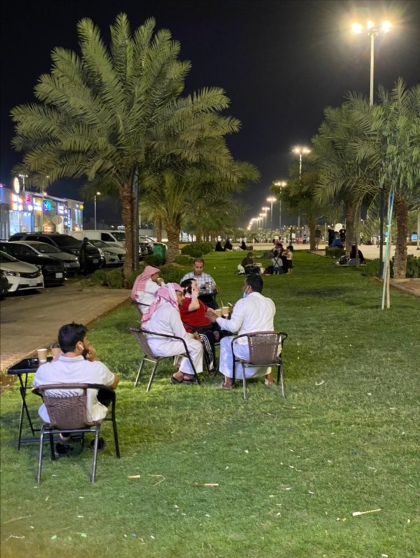 جلسات في محيط الممشى المخصص للتريض (تصوير: ياسر الحربي Y Alharby@).