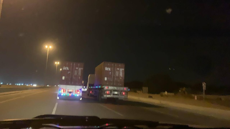 أرتال من الشاحنات، غبار متطاير، فوضى مرورية على طريق بريمان هدى الشام بانتظار العاشرة مساءً ليتحول المكان إلى حلبة سباق بين قائدي الشاحنات الذين لا يلتزمون بالسير في المسار الأيمن لتجاوز نقطة المنع التي يتم إنشاؤها من قبل المرور لمنع دخول الشاحنات للمدينة في ساعات الذروة.