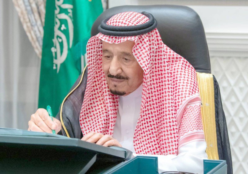 خادم الحرمين الشريفين خلال ترؤسه جلسة مجلس الوزراء عبر الاتصال المرئي، أمس (الثلاثاء).