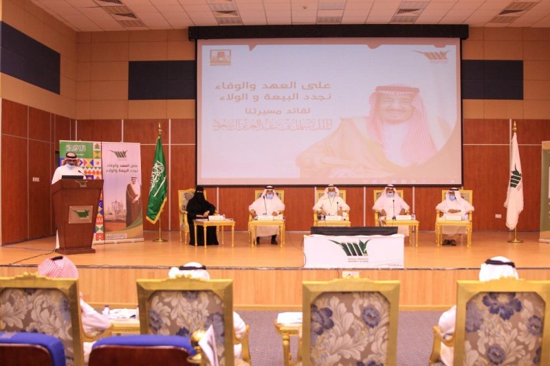 وافتتح الندوة رئيس الجامعة الدكتور محمد بن محسن صفحي، بكلمة رفع فيها باسمه ونيابة عن جميع منسوبي الجامعة آسمى آيات التهاني والتبريكات لمقام خادم الحرمين الشريفين الملك سلمان بن عبدالعزيز، وللأمير محمد بن سلمان بن عبدالعزيز ولي العهد نائب رئيس مجلس الوزراء وزير الدفاع، وللأسرة المالكة والشعب السعودي بمناسبة ذكرى البيعة. وقال: ستة أعوام مرت على بيعة قائد مملكتنا، وإنجازات مملكتنا الحبيبة حاضرة، مفعمة برؤية طموحة لمستقبل واعد لأطهر بلاد العالم، ذكرى نجدد معها العهد والبيعة، وسط حب وولاء يتمدد؛ ليشمل أرجاء الوطن كافة.