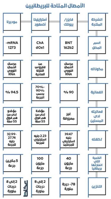 ونجحت بريطانيا- كما أشارت «عكاظ» أمس- في تأمين نحو 350 مليون جرعة من أبرز 3 لقاحات مرشحة لتكون أقوى سلاح لإلحاق الهزيمة بالوباء، وهي لقاحات أسترازينيكا/جامعة أكسفورد، وفايزر/بيونتك، وموديرنا. وفيما يجري تقويم نجاعة ومأمونية لقاح أسترازينيكا/أكسفورد من قبل السلطات المعنية بفسح الأدوية والأمصال الجديدة؛ أكدت صحف لندن أمس أن بريطانيا ستعلن فسح لقاح فايزر/بيونتك الأمريكي الألماني قبيل نهاية الأسبوع الحالي.