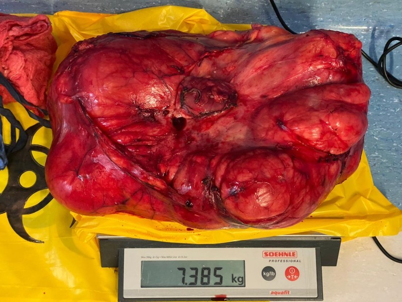 وأضاف آل عواض، أنه تم إجراء الجراحة واستئصال الورم ويبلغ وزنه 7 كيلو و385 غراماً، لافتاً إلى أن المريضة حالتها الصحية مستقرة.