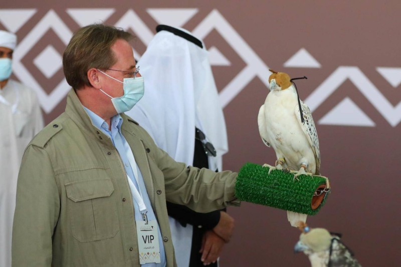 وأبدى السفير إعجابه بالمهرجان، وتجول في أروقته، والتقى الصقارين، إذ تعرف على أنواع الصقور وفئاتها، وتابع مجموعة من الصقور أثناء قطعها مسافة شوط مسابقة الملواح، البالغة 400 متر.