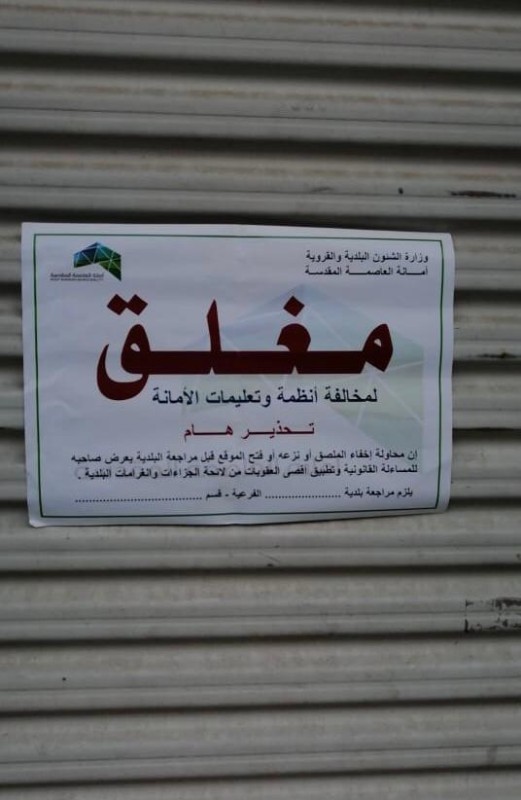 أغلقت أمانة العاصمة المقدسة عصر أمس، أحد أشهر الأسواق التجارية بحي العزيزية، والذي يضم نحو 200 محل لمختلف الأنشطة التجارية. وقامت الفرق الميدانية بوضع صبات على كافة مداخل السوق، وملصقات على كافة أبواب المحلات حملت عبارة «مغلق لمخالفة أنظمة وتعليمات الأمانة».