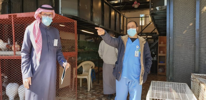 وقف فريق من الثروة الحيوانية بمكتب وزارة البيئة والمياه والزراعة بمحافظة الطائف، على سوق المواشي في المحافظة، وسوق الطيور، والمسلخ؛ وذلك لجمع عينات استقصاء وبائية، والتأكد من خلوّ أسواق الطيور من انفلونزا الطيور.