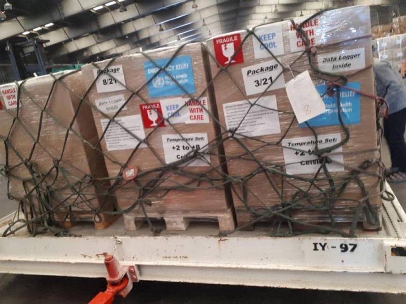 شحنة المستلزمات الطبية التي تسلمتها منظمة الصحة العالمية.