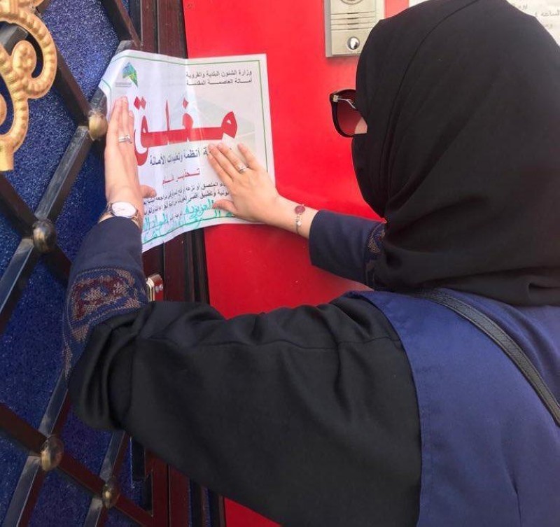 مفتشة البلدية خلال إغلاق المنشأة.