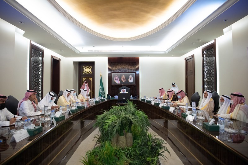 الأمير خالد الفيصل خلال ترؤسه اجتماع جمعية مراكز الأحياء بالمنطقة.