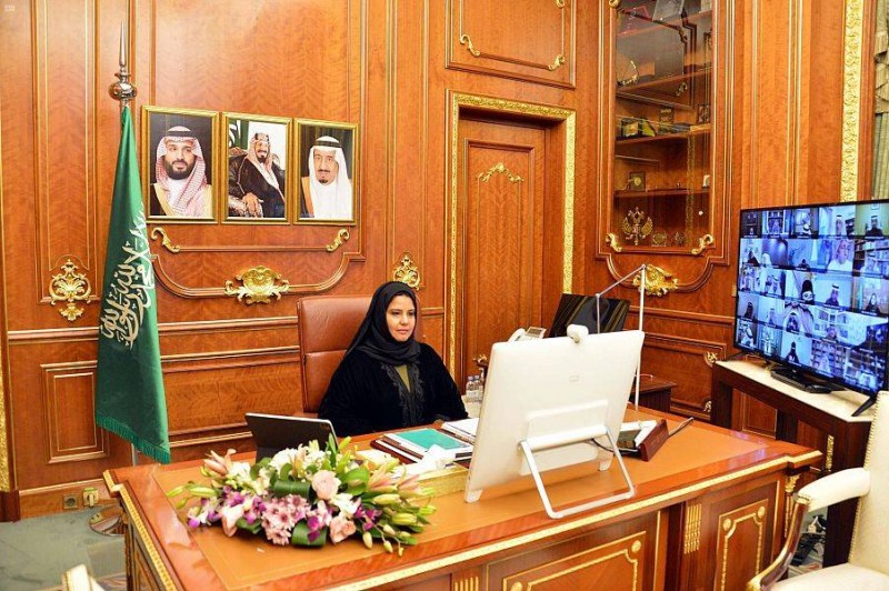 مساعدة رئيس مجلس الشورى حنان الأحمدي أثناء الجلسة أمس.