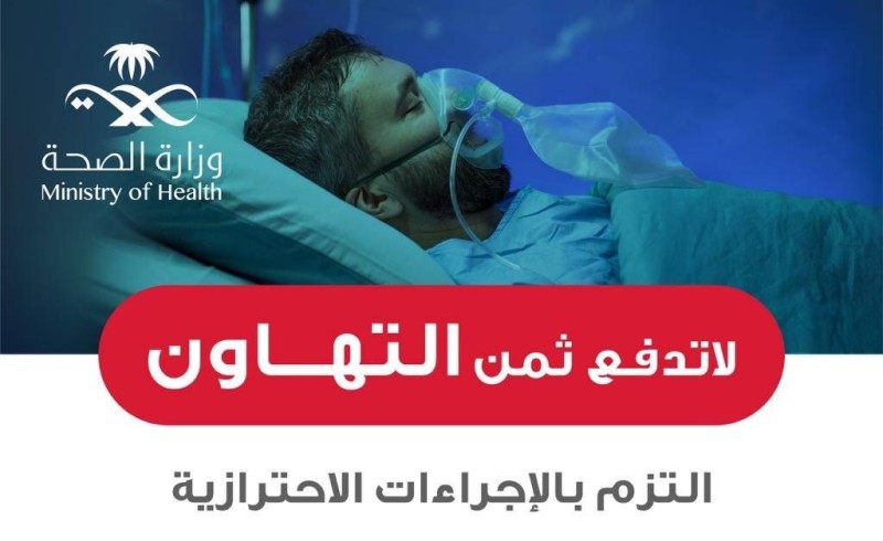 وأضافت «الصحة»: «لا تدفع ثمن التهاون.. التزم بالإجراءات الاحترازية: ارتداء الكمامة، التباعد الاجتماعي، تعقيم وتنظيف اليدين، تجنب المصافحة».