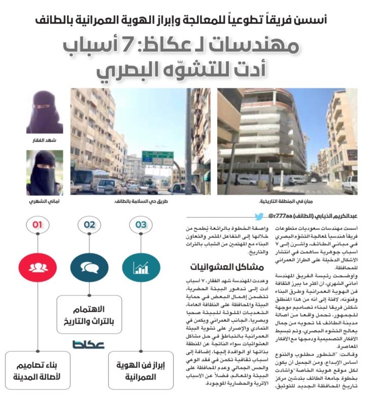 ويأتي ذلك تفاعلاً مع التقرير الذي نشرته «عكاظ» أمس تحت عنوان «مهندسات لـ عكاظ: 7 أسباب أدّت للتشوّه البصري».