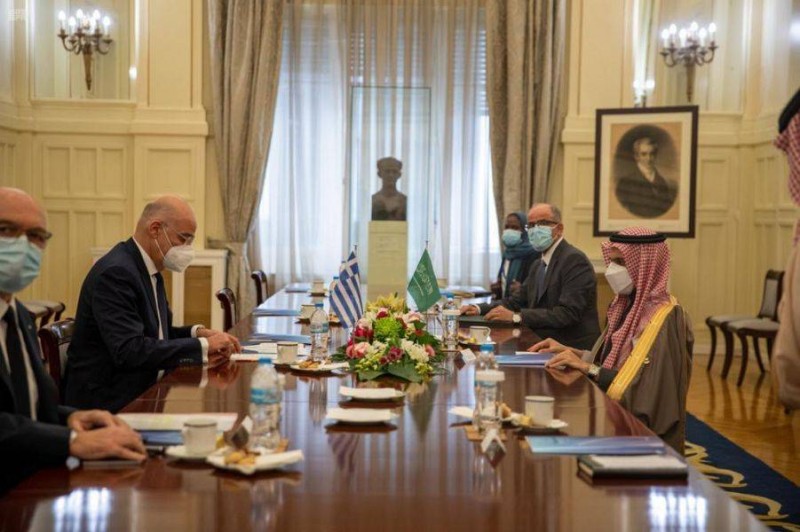 من جهة أخرى، عقد الأمير فيصل بن فرحان بن عبدالله وزير الخارجية، اليوم (الخميس) جلسة مباحثات رسمية مع وزير خارجية جمهورية اليونان نيكوس دندياس، وذلك في مقر وزارة الخارجية بالعاصمة اليونانية أثينا.