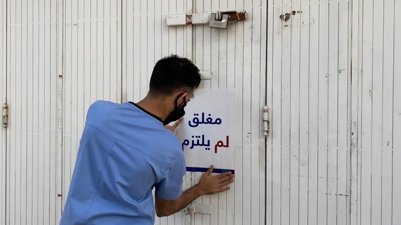 مفتش بلدية يغلق منشأة لم تلتزم بالإجراءات الاحترازية (تصوير: مديني عسيري)