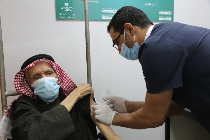 مواطن يتلقى لقاح كورونا في مدينة الملك عبدالله الطبية.