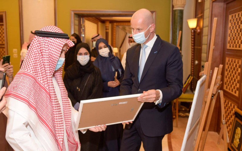وفي التفاصيل تم إقامة المعرض الفني في الجناح الملكي في الفندق مع كافة التجهيزات، وقدم الفندق درعا تكريمية وهدايا عينية للشاب، وتسلم مدير عام الفندق «الكساندر سل» لوحة من إبداع الشاب الفنان تحمل شعار الفندق كتعبير شكرٍ على الاحتفاء بموهبته الفريدة. ولمشاهدة اللوحات والأعمال الفنية الفريدة للشاب عبدالله بشاوري يمكنكم زيارة المعرض الفني افتراضياً وطلب الرابط من حساب الفندق على إنستغرام حفاظاً على سلامتكم.
