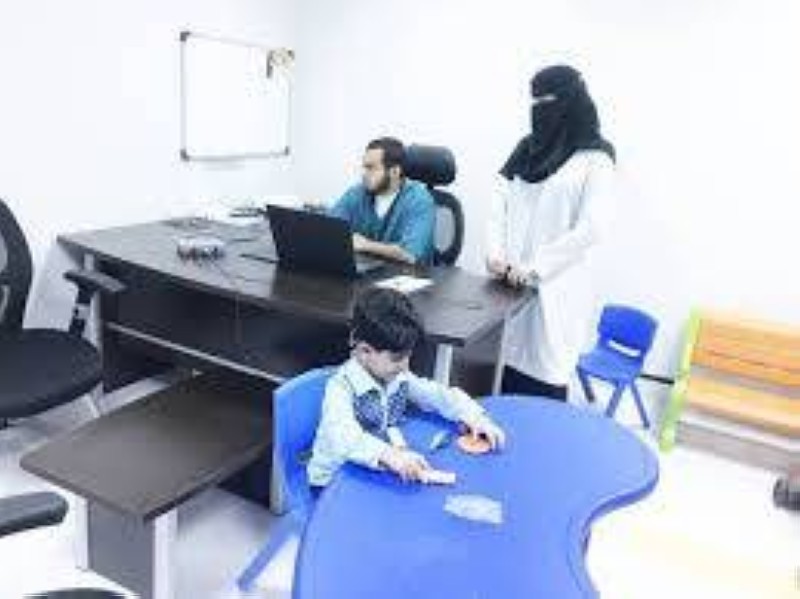 طفلة تمارس مهاراتها في مركز القوقعة بجدة.