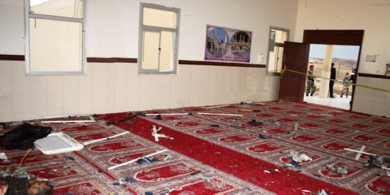 آثار التفجير الإرهابي لمسجد التدريب لقوات الطوارئ بأبها في 6 أغسطس 2015.