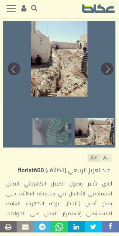 بدأت الشركة المنفذة لمشروع إعادة الكابل الكهربائي البديل لمستشفى الأطفال في الطائف مساء أمس (الثلاثاء) في توصيل التيار الكهربائي لأقسام المستشفى وإلغاء المولدات الكهربائية تحت اشراف إدارة الشؤون الهندسية بصحة الطائف.وكان الكابل الكهربائي الرابط بين مستشفى الأطفال والمحطات الكهربائية على الشارع الرئيسي تعرض للقطع بسبب خطأ مقاول ووفرت الشؤون الصحية بالطائف مولدات كهربائية بالإيجار، وأعاق تأخير وصول الكابل البديل من الرياض حتى أمس (الثلاثاء) عودة الكهرباء العامة للمستشفى واستمرار العمل بالمولدات المستأجرة لليوم الـ14 على التوالي. وكشف مصدر مسؤول في صحة الطائف لـ«عكاظ» اعتماد شراء الكابل الكهربائي البديل لمستشفى الأطفال في محافظة الطائف من الرياض، وسيتم العمل على إيصال الكابل البديل والتشغيل في غضون يومين، بعد أن انتهت الشركة المنفذة من الحفر. من جانبه، أوضح المتحدث باسم صحة الطائف سراج الحميدان، أن المستشفى لم يتأثر بالانقطاع الجزئي الذي حدث لقسم الطوارئ والعيادات الخارجية، وأن عدد من راجعوا قسم الطوارئ خلال الفترة السابقة بلغ 2707 مراجعين، بينما بلغ عدد مراجعي العيادات الخارجية 736 مراجعا.