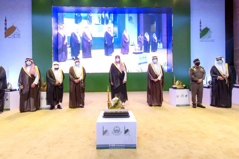ودشن خلال الاحتفالية الهوية البصرية لمؤسسة جائزة المدينة المنورة، وشاهد فيلماً وثائقياً عن جهود القطاعات الحكومية والخاصة والأهلية بالمنطقة خلال جائحة كورونا، ووثائقياً عن مسيرة الجائزة، وكرم الرُعاة والجهات الفائزة بالجائزة في هذه الدورة الاستثنائية، حيث حققت الإدارة العامة للتعليم بالمنطقة المركز الأول في فرع التميّز في إدارة العمل عن بُعد، وحققت وكالة الرئاسة العامة لشؤون المسجد النبوي المركز الثاني، وجاءت الجامعة الإسلامية في المركز الثالث.