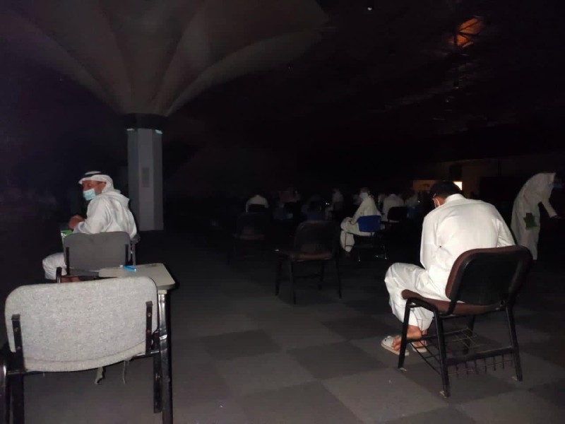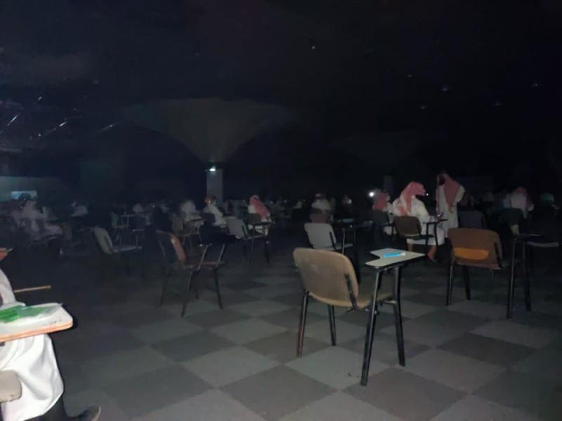 وفوجئ المعلمون الذين حضروا بانقطاع التيار الكهربائي بعد دخولهم إلى القاعة عقب صلاة المغرب تمهيدا لبدء الاختبارات. ولم يتسن للجنة تسليم أوراق الأسئلة للحاضرين على الرغم من اكتمال الحضور، إذ تسبب الظلام الدامس في تأخير توزيع الأسئلة وسط تذمر المعلمين لمدة تجاوزت ساعة ونصف حتى عودة التيار مرة أخرى.